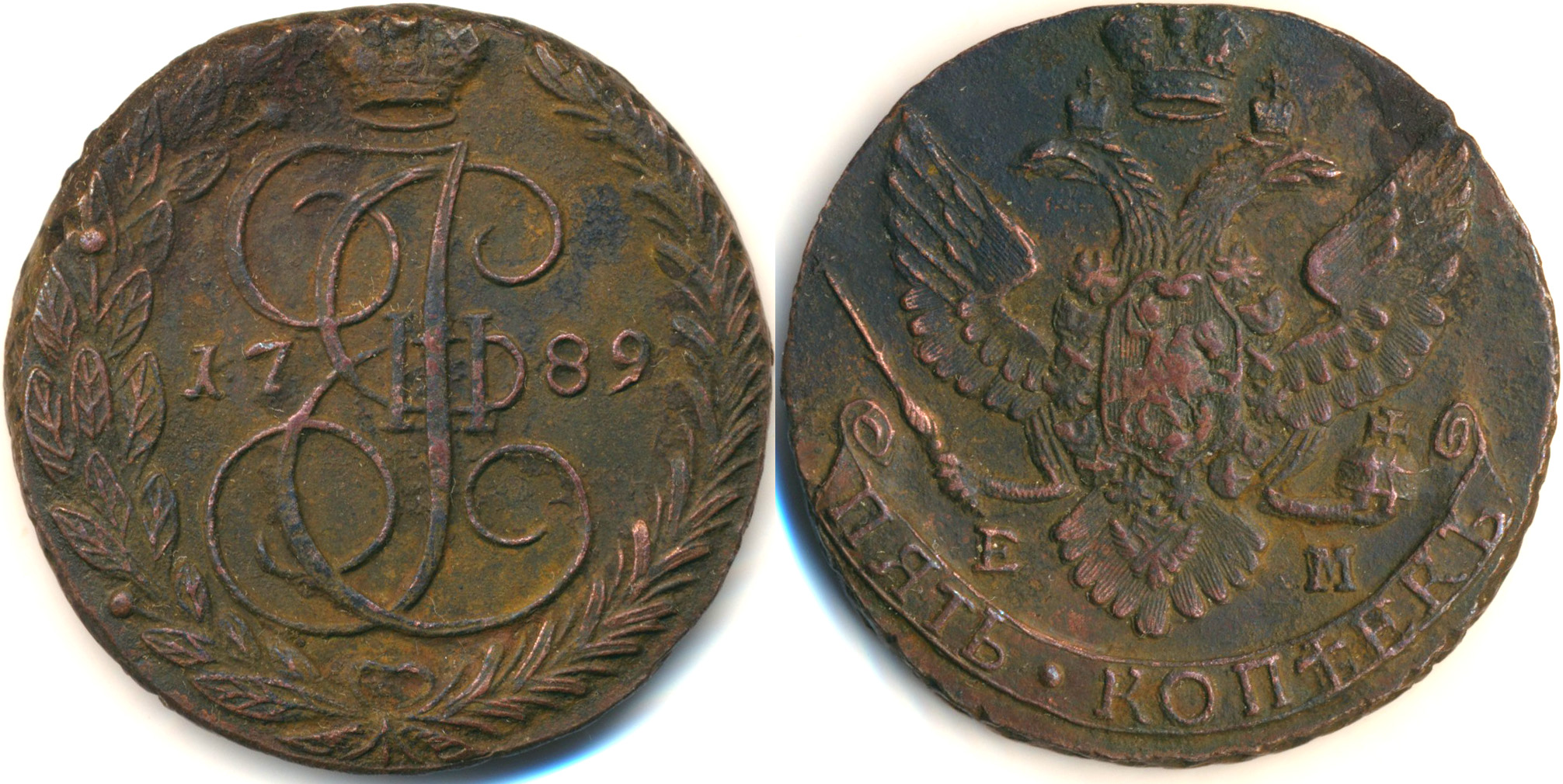 | #490074 | 1789 AM, 5 kopeks, Cr 59.2, Br 282, Diak 632, VF-XF