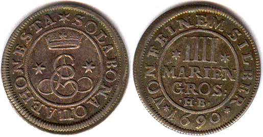 #73 | 1690, HB, 4 mariengroschen, KM 338, XF