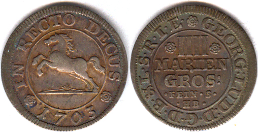 #74 | 1703, HB, 4 mariengroschen, KM 33, XF