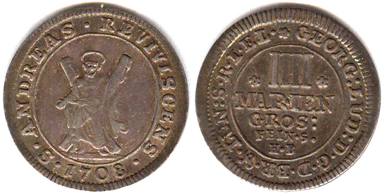 #75 | 1708, HB, 4 mariengroschen, KM 53, XF