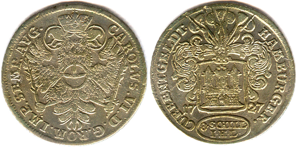 #81 | 1727, IHL, 8 schilling, KM 165, VF-XF