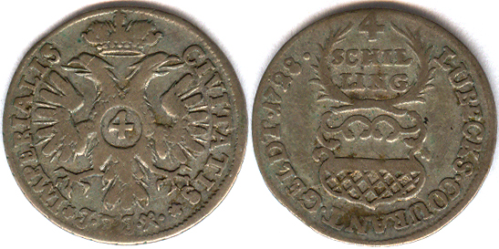 #84 | 1728, JJJ, 4 schilling, KM 143, VF
