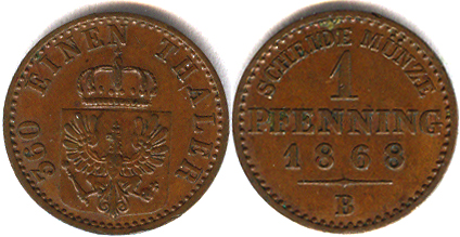 #92 | 1868, B, 1 pfennig, KM 480, XF w/some Red