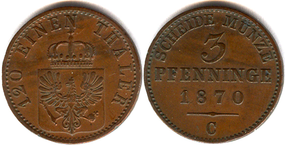 #93 | 1870, C, 3 pfenninge, KM 482, Cr 163a, XF