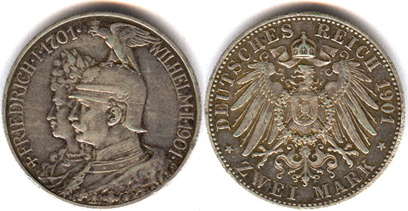 #94 | 1901, A, 2 marks, KM 525, Y 109 , 200 Years of Kingdom Commemorative, VF-XF
