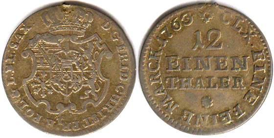 #96 | 1763, FWoF, 1/12 thaler, KM 956, Cr 76, traces of gilding and a suspension loop at 12:00, , VF-XF