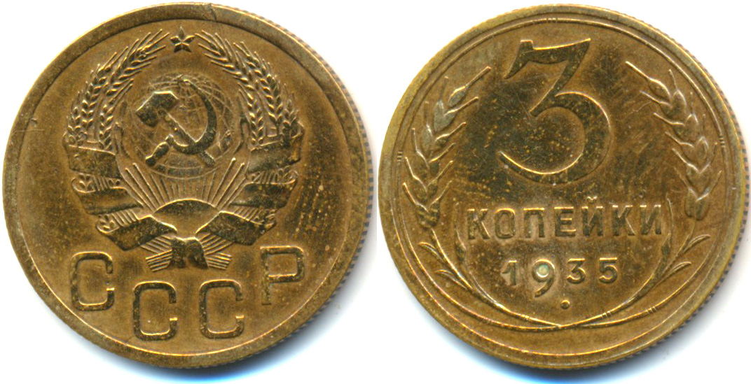 | #330010 | USSR, 1935, 1 kopek, Y 91, Ф32-34, Shyol 12a, Old type, cuts on stems, VF-XF